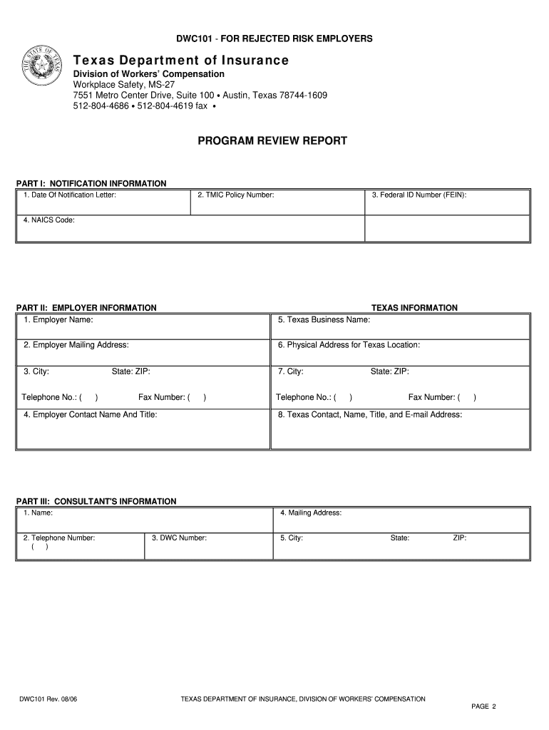 How to fill out DWC101 - FOR REJECTED RISK EMPLOYERS