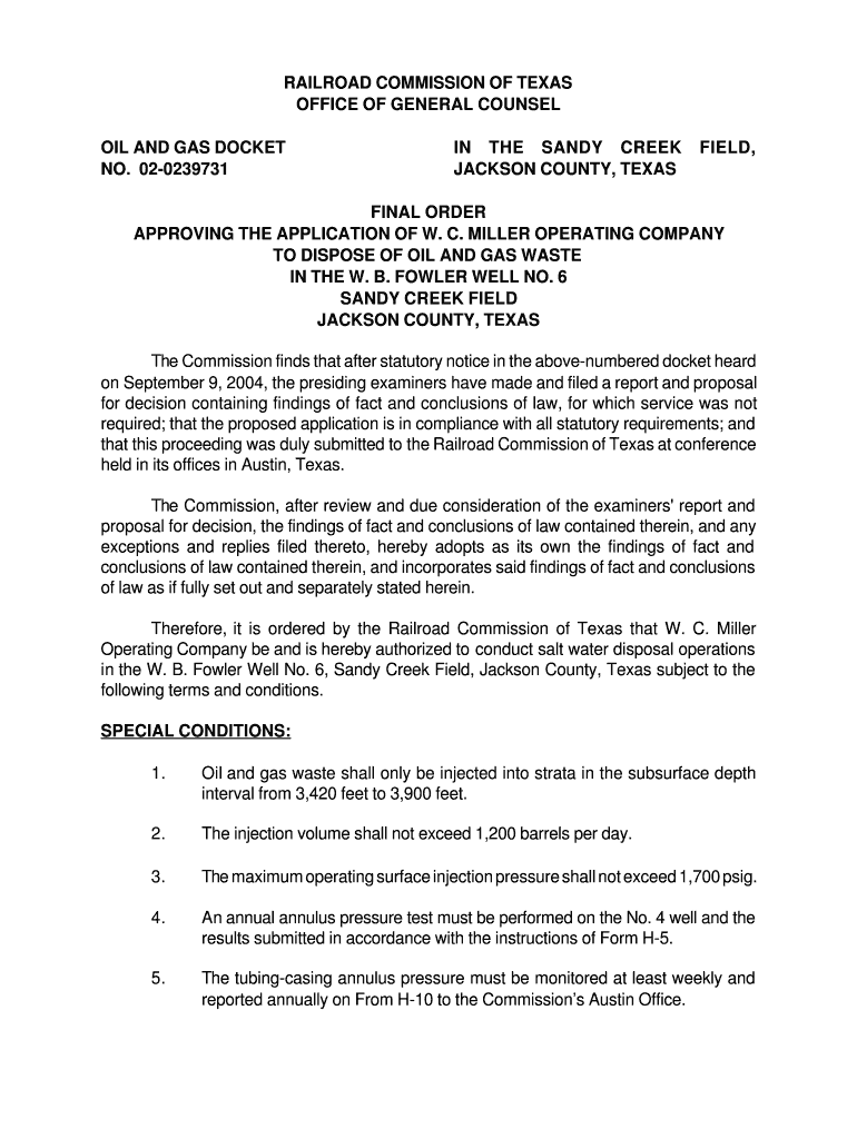 Get the free OIL AND GAS DOCKET NO. 02-0239731 - rrc state tx