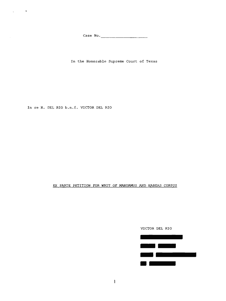 This document is a court filing in the Supreme Court of Texas regarding a petition for a writ of mandamus and habeas corpus, filed by Victor Del Rio on behalf of N. Del Rio. It includes details of