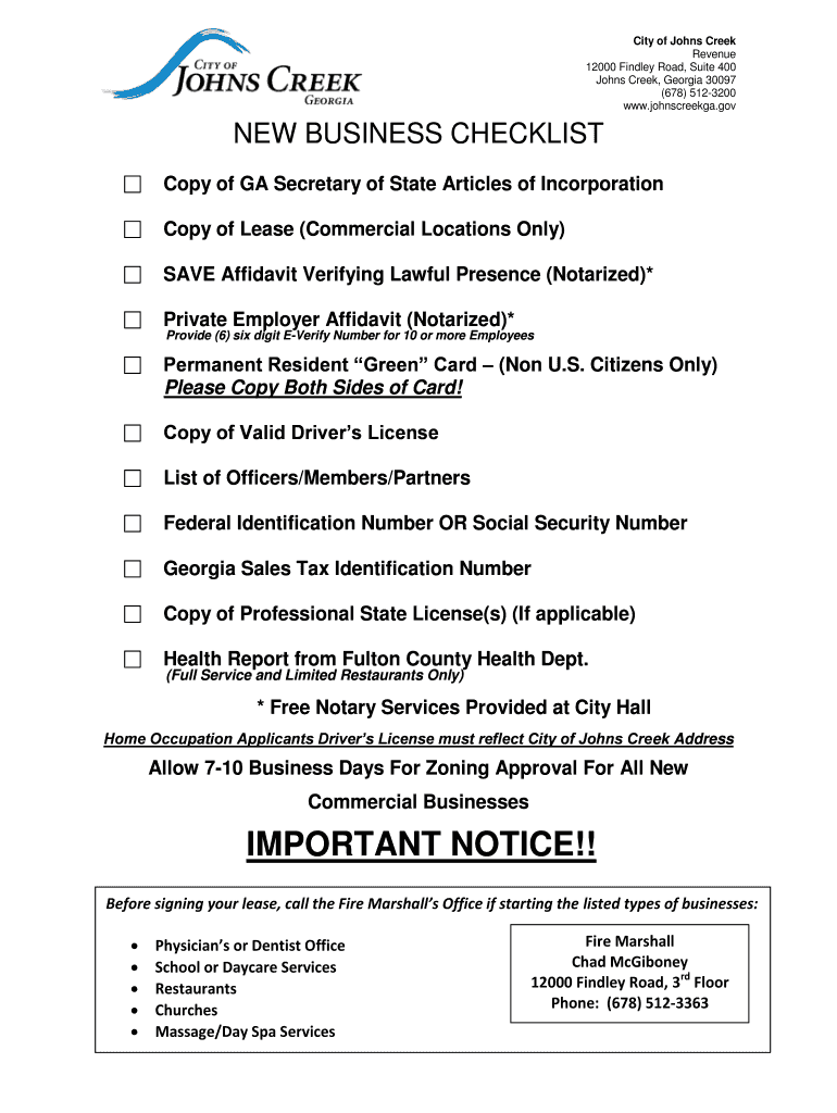Get the free NEW BUSINESS CHECKLIST - johnscreekga