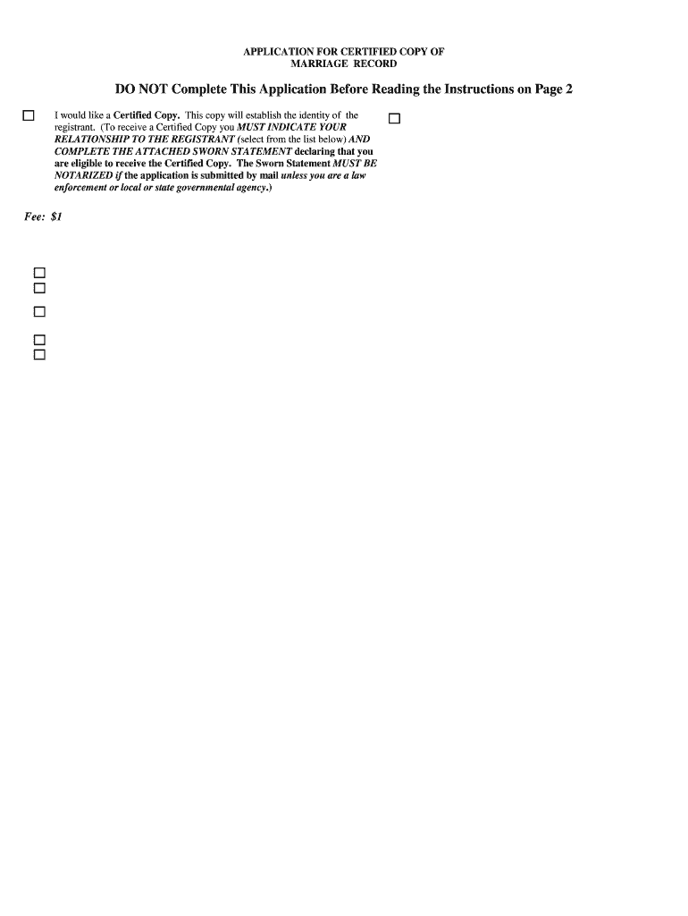 Get the free California Marriage Record Application