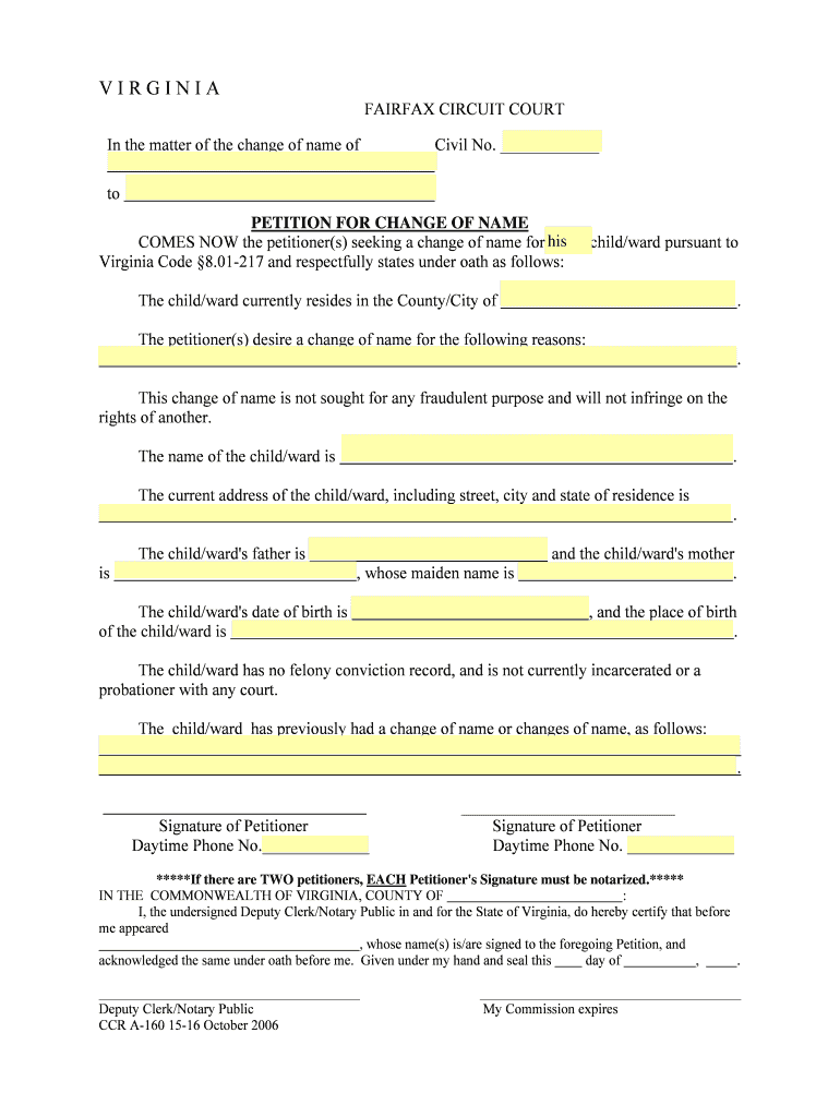 Get the free Name Change Petition & Order - Fairfax County Government - fairfaxcounty