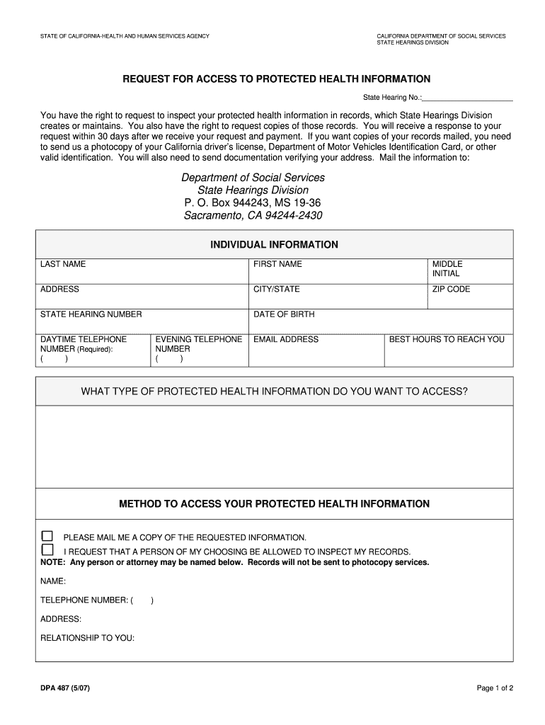 Any individual looking to access their protected health information maintained by the California Department of Social Services is eligible to use this form. This includes patients and legal representatives.