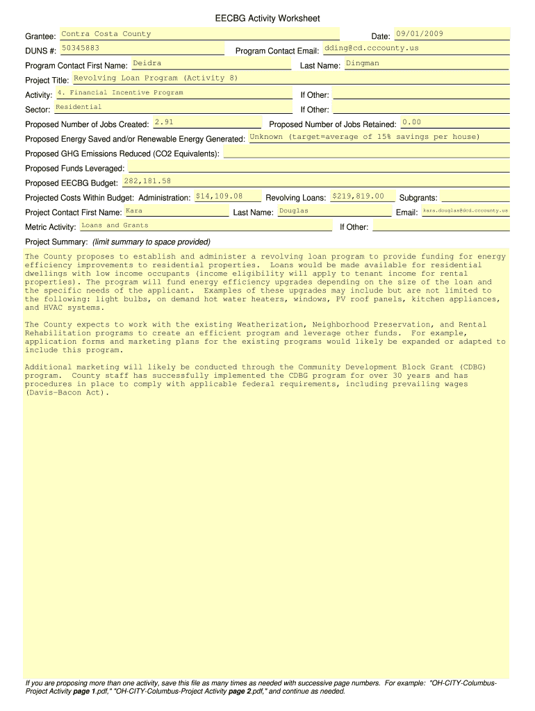 How to fill out the eecbg activity worksheet