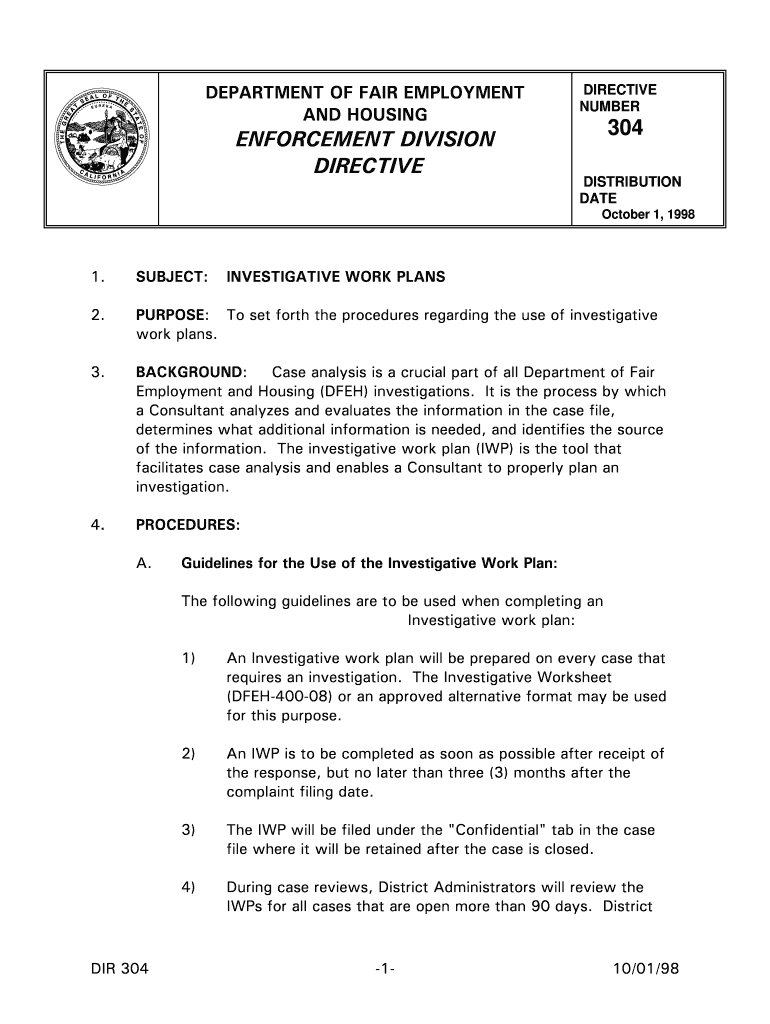 This document outlines the procedures regarding the use of investigative work plans in the Department of Fair Employment and Housing investigations.
