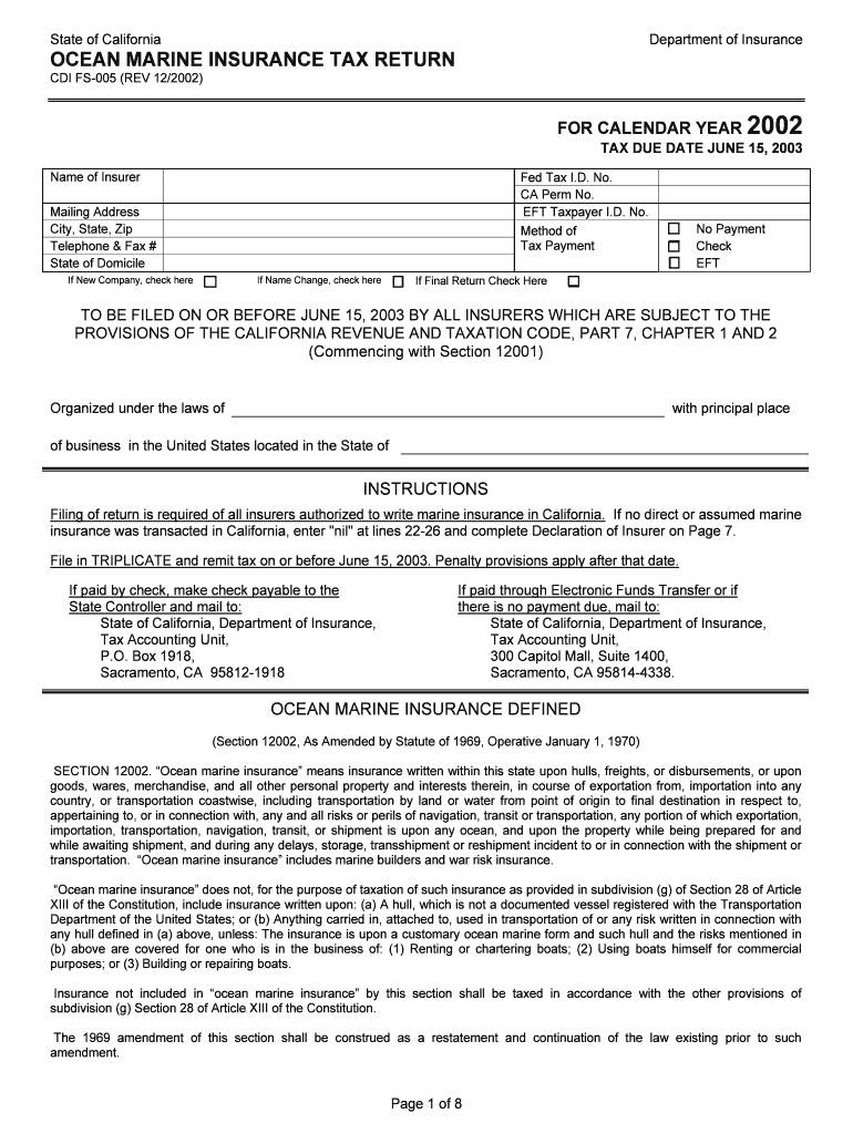 Get the free OCEAN MARINE INSURANCE TAX RETURN - insurance ca