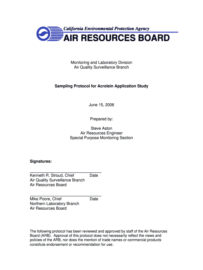 Get the free Sampling Protocol for Acrolein Application Study - cdpr ca