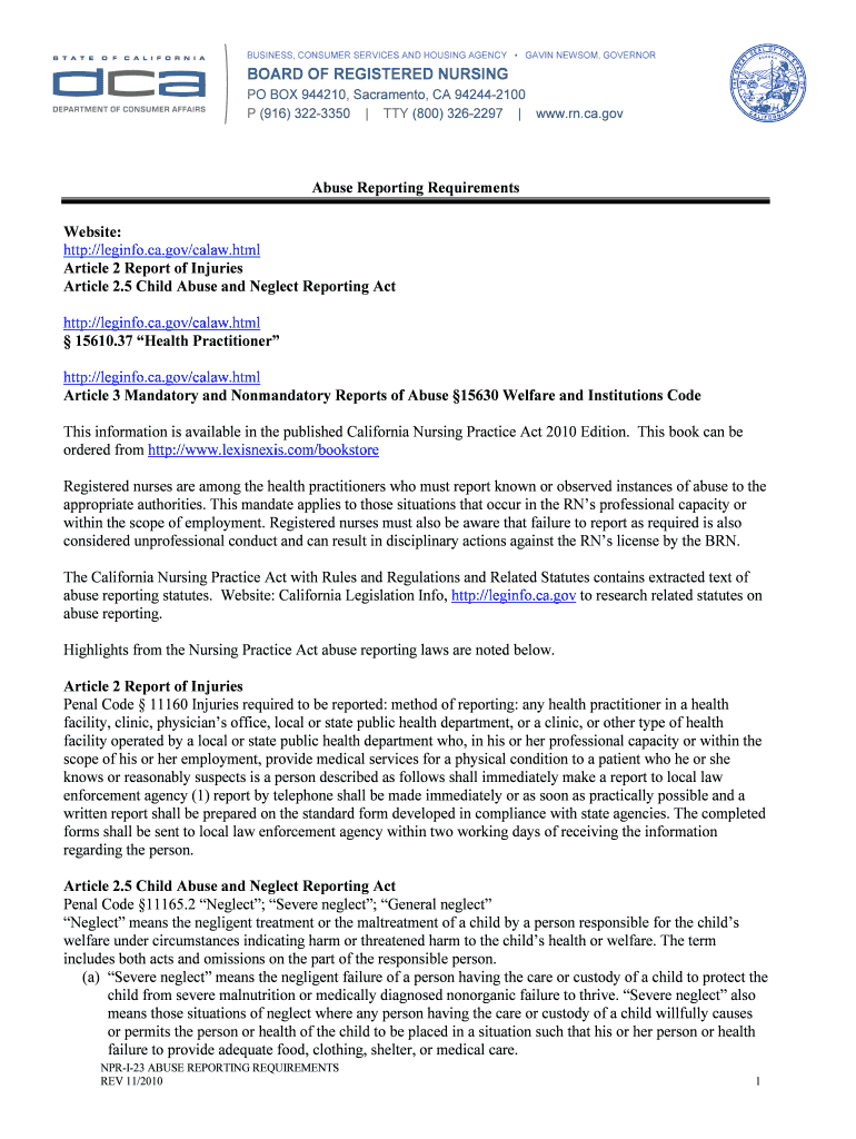 Get the free NPR-I-23 ABUSE REPORTING REQUIREMENTS - rn ca