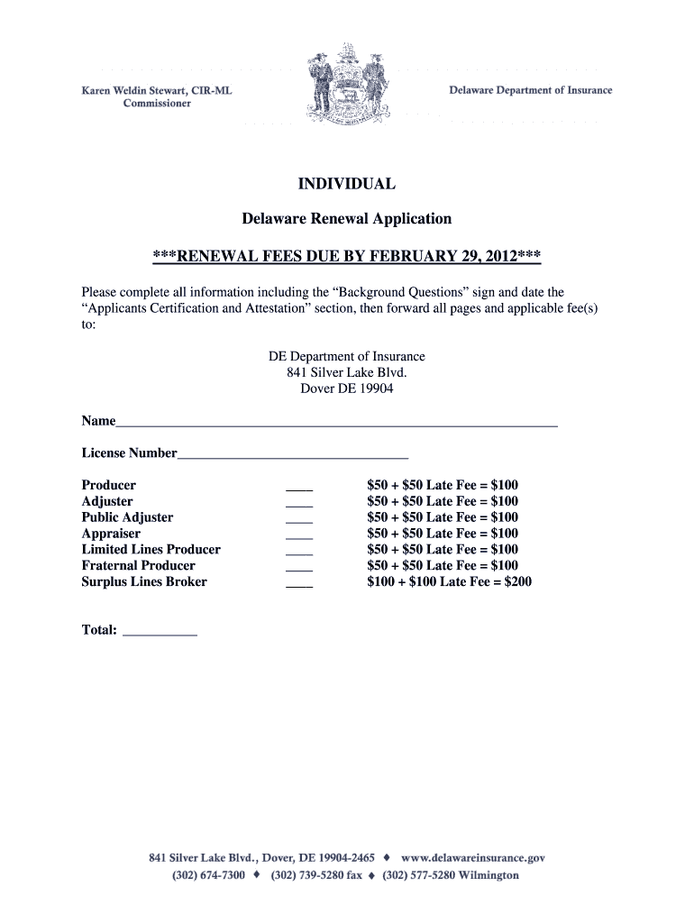 Fees, Deadlines, and Payment Methods for the Delaware Insurance License Renewal Application