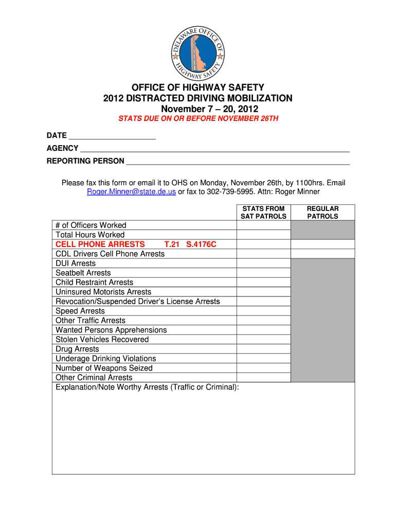 Get the free OFFICE OF HIGHWAY SAFETY 2012 DISTRACTED DRIVING ... - ohs delaware