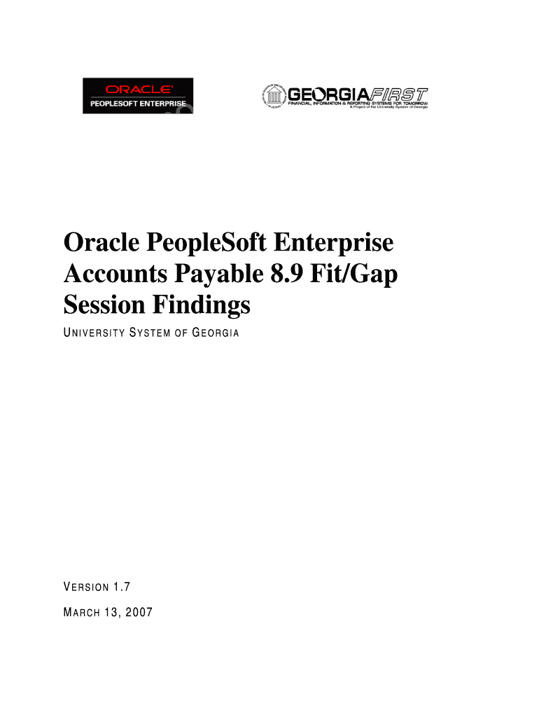 Organizations that utilize the Accounts Payable 8.9 system and are undergoing the implementation or upgrade process are required to file the Accounts Payable 8.9 Fit/Gap Session Findings.