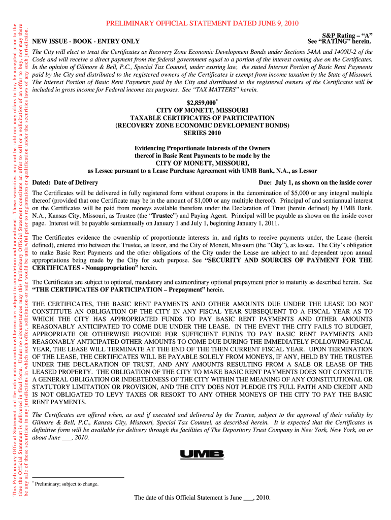 Edit your preliminary official statement dated form online