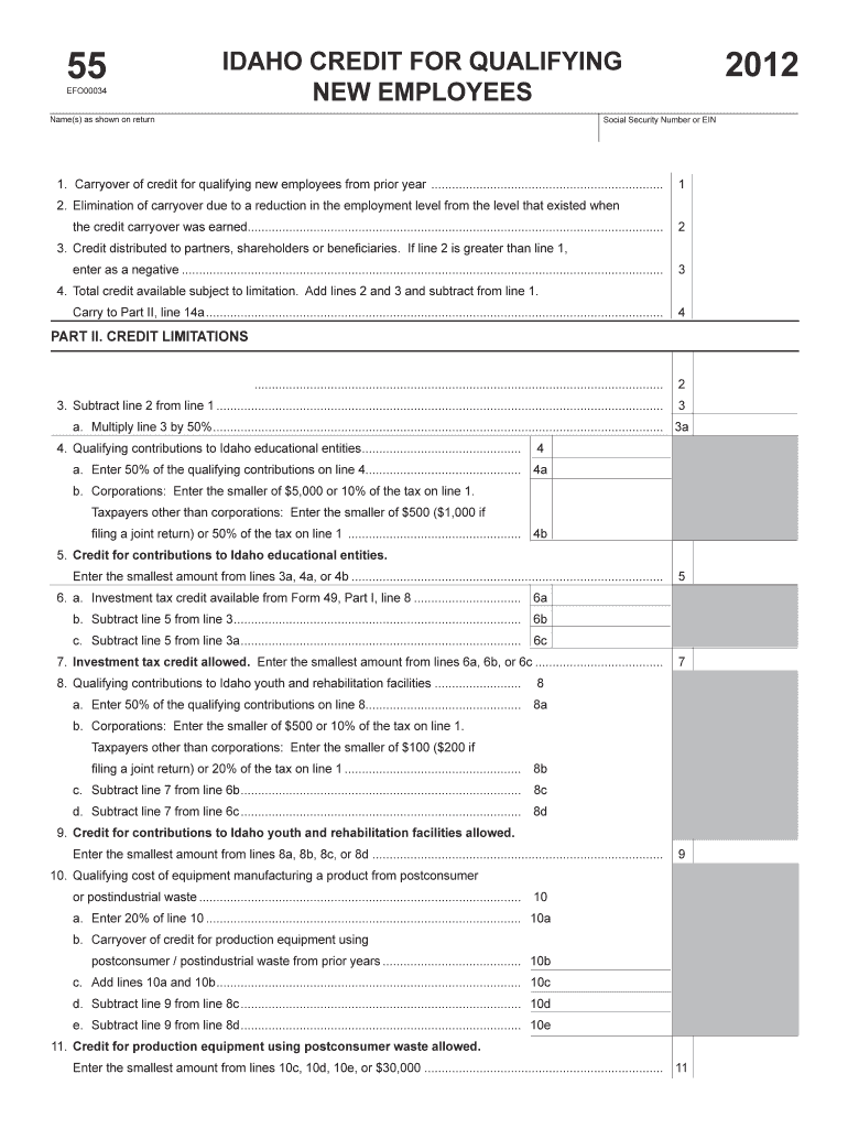 Employers who have hired qualifying new employees and want to claim the tax credit must file for the Idaho Credit for Qualifying New Employees.
