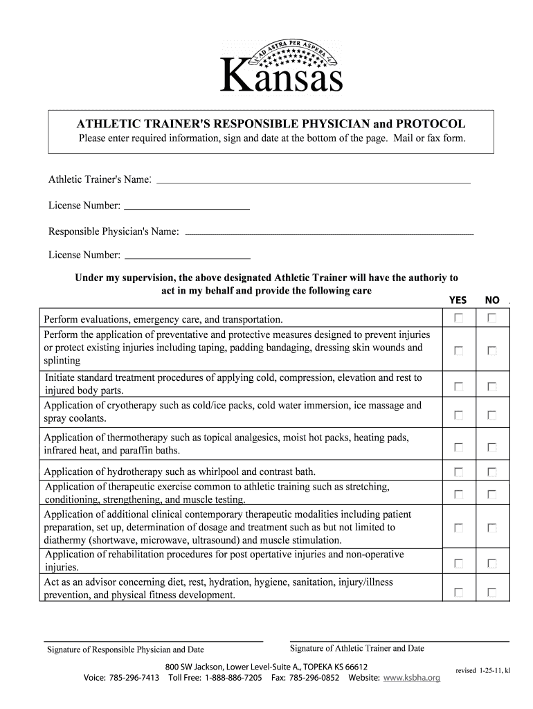 How to fill out Athletic Trainer's Responsible Physician and Protocol