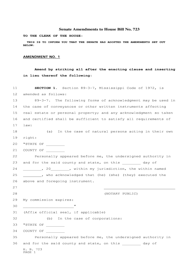 House Bill 723 has substantially influenced the standards for acknowledgment forms in Mississippi, as it specifies essential criteria for their usage. Understanding these regulations is crucial for anyone involved in property transactions, as non-compliance can lead to legal complications.