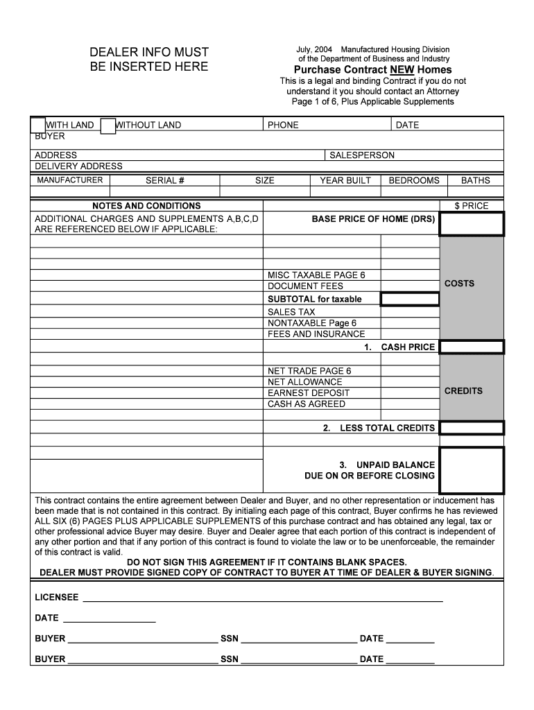 Get the free New Home Purchase Contract - Manufactured Housing Division