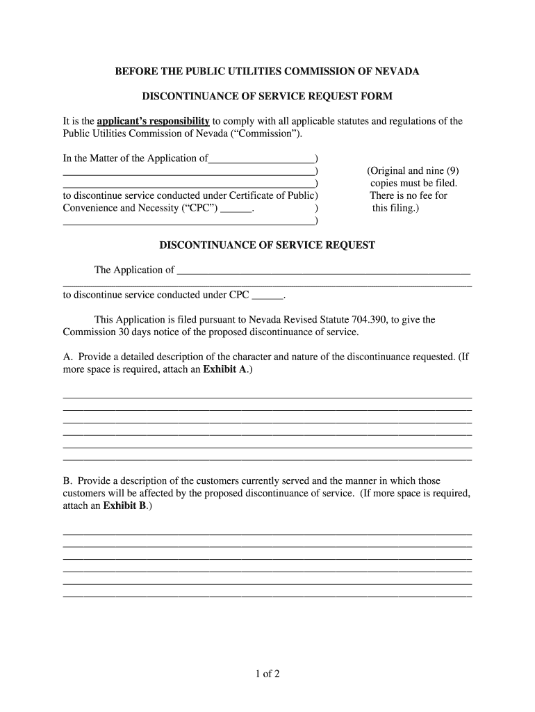 Get the free DISCONTINUANCE OF SERVICE REQUEST FORM - pucweb1 state nv