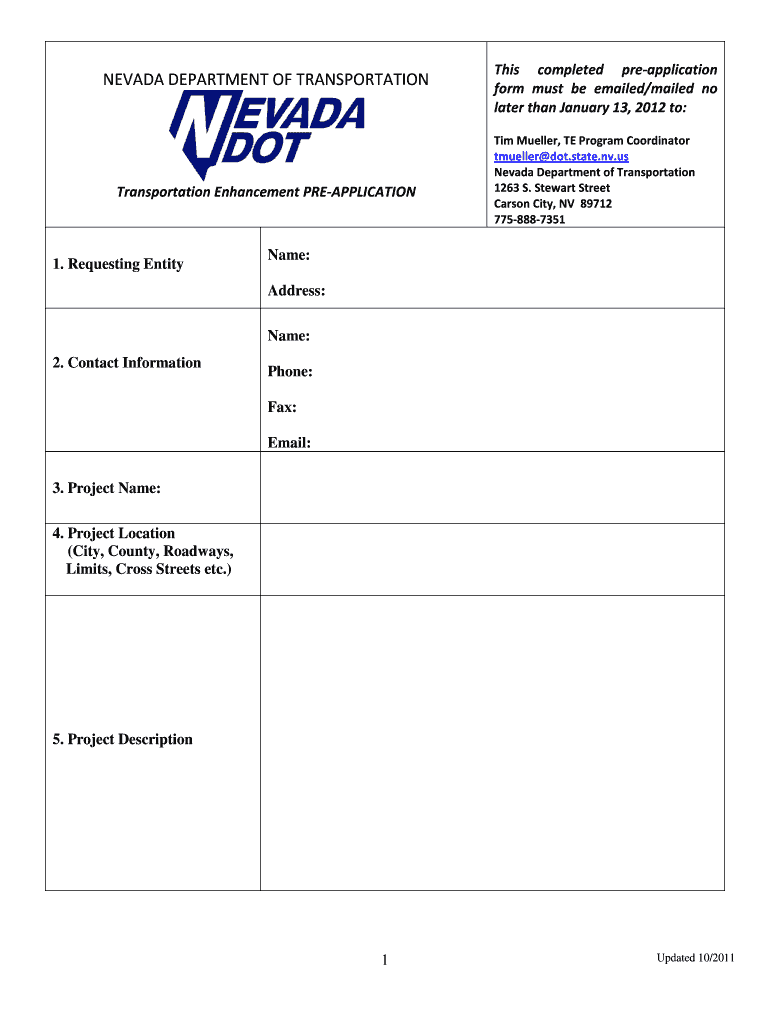 Este formulario de pre-solicitud permite al NDOT determinar si el proyecto de mejora propuesto es viable.