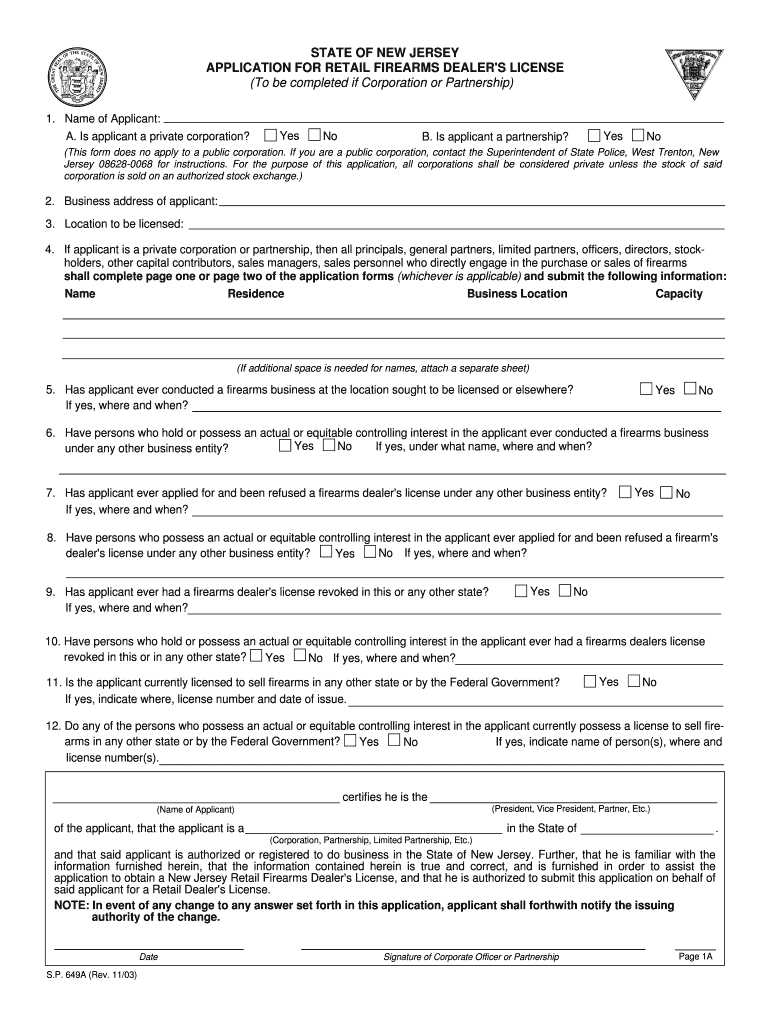Get the free Application for Retail Firearms Dealer's License - njsp