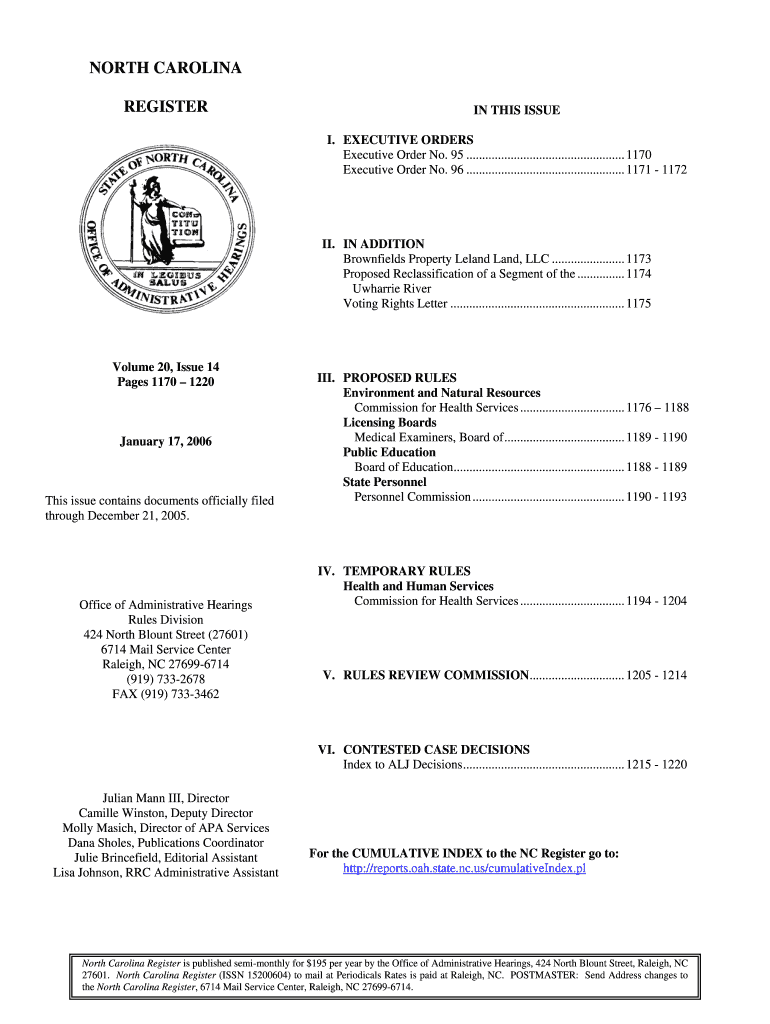 Get the free North Carolina Register