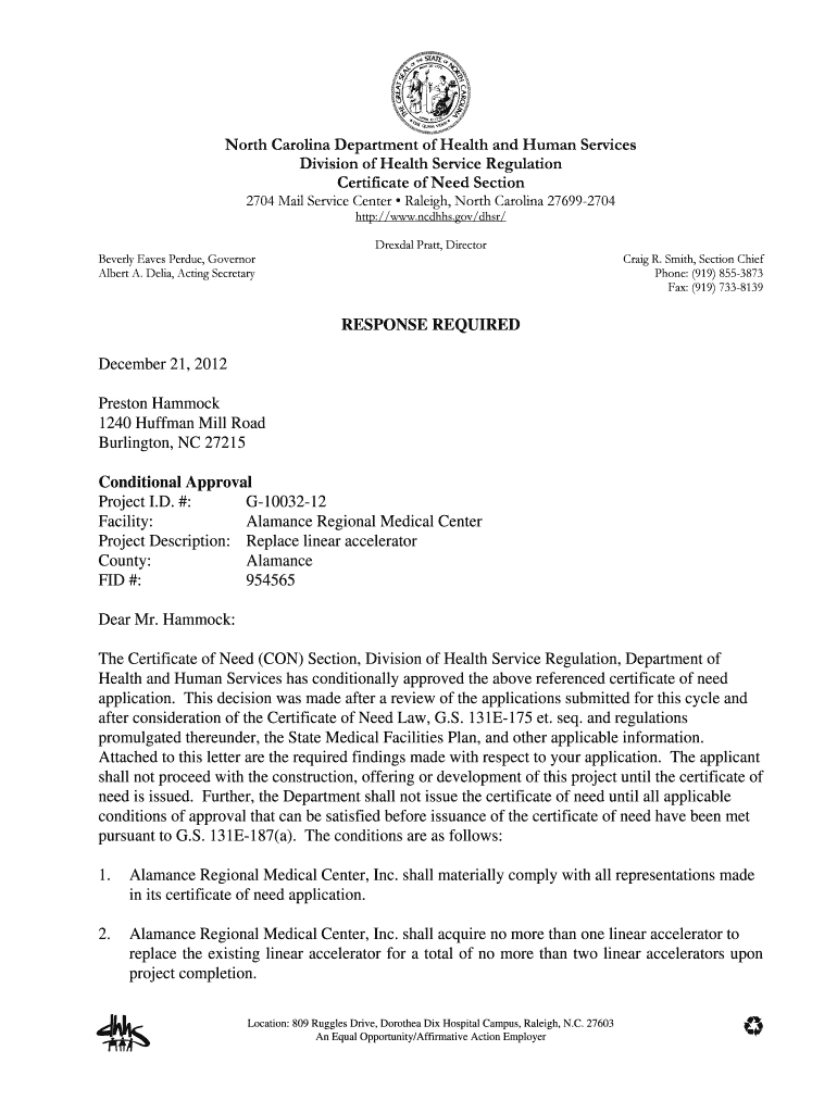 Get the free NC DHSR CON: Decision Letter for Alamance Regional Medical ... - ncdhhs