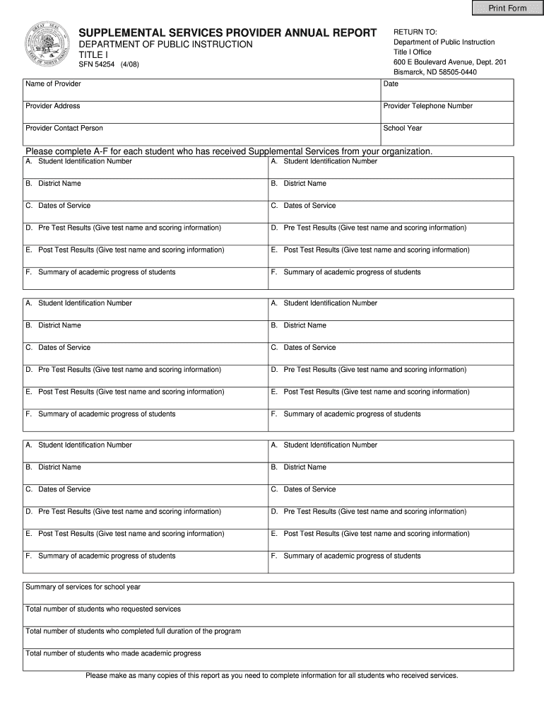 Get the free SUPPLEMENTAL SERVICES PROVIDER ANNUAL REPORT - dpi state nd
