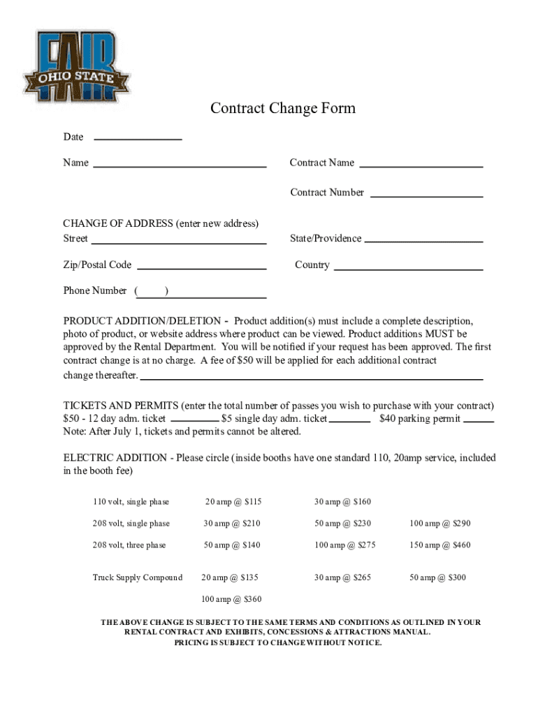 Get the free Contract Change Form