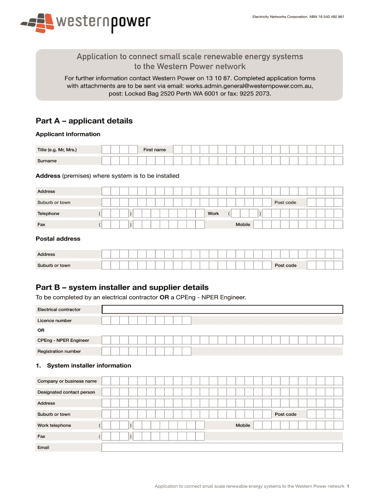 Get the free Application to connect small scale renewable energy systems to the Western Power net...