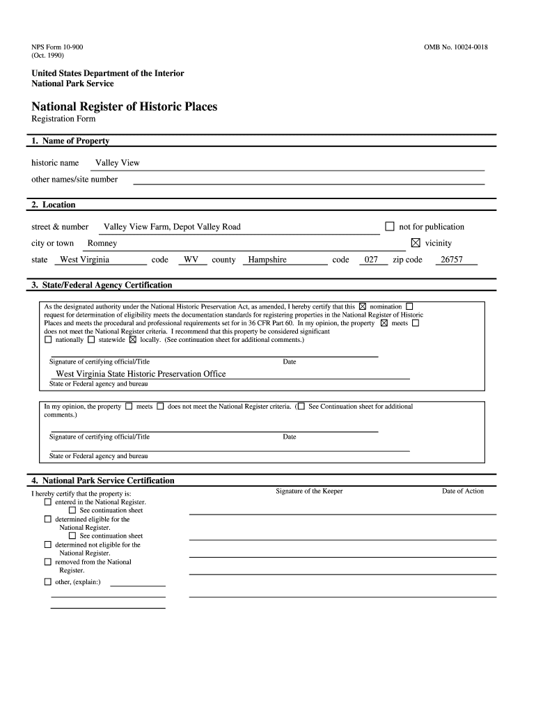 Get the free NPS Form 10-900 - wvculture