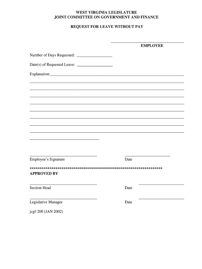 This form is used by employees of the West Virginia Legislature to formally request leave without pay, providing necessary details such as the number of days, dates of requested leave, and an explanation