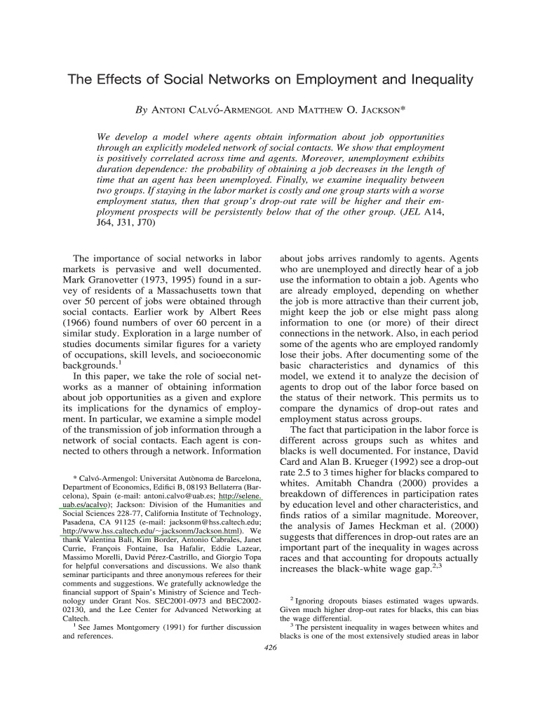 Get the free The Effects of Social Networks on Employment and Inequality - econ nyu