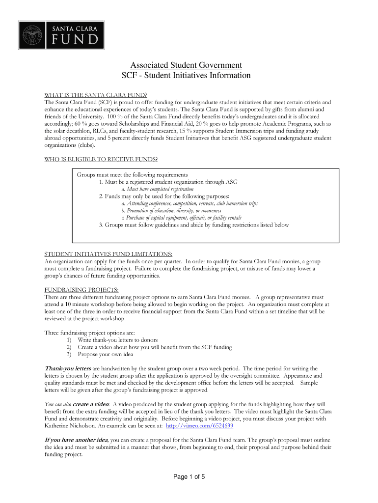 Get the free Santa Clara Fund - Student Initiatives Information - scu
