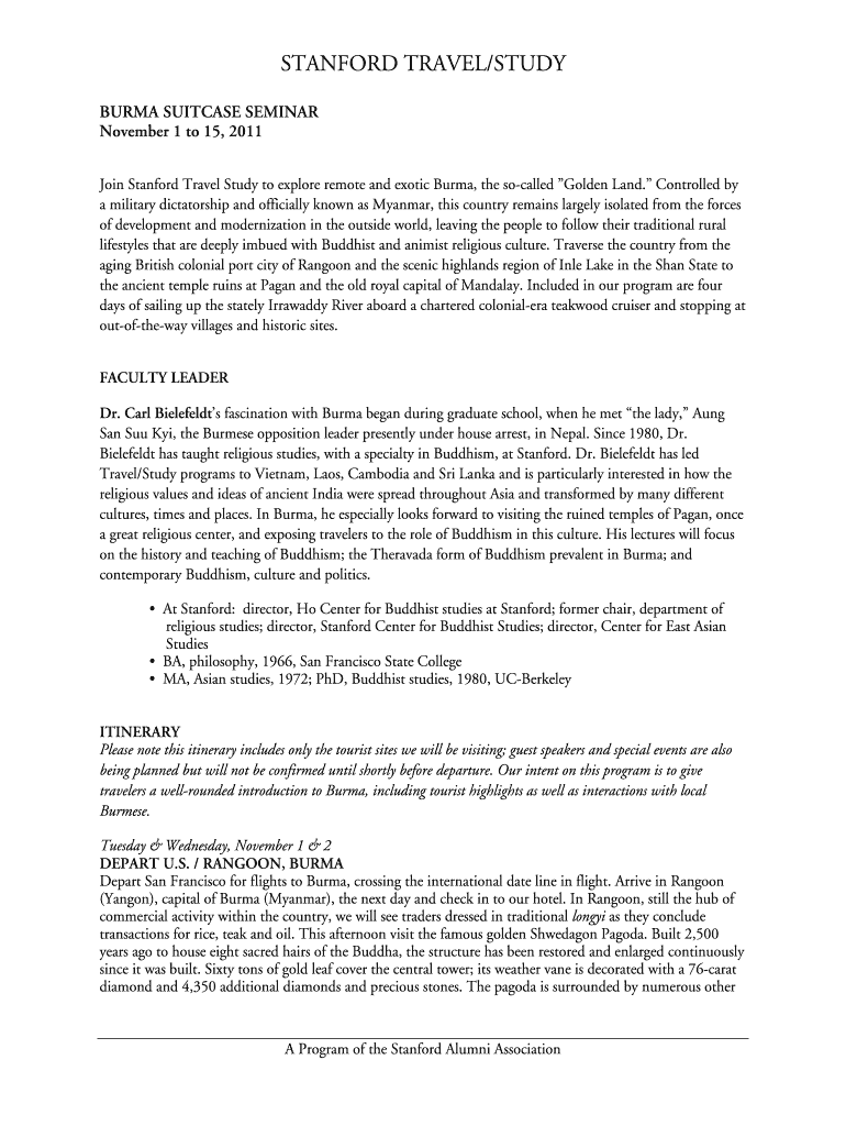 Get the free Burma Suitcase Seminar - alumni stanford