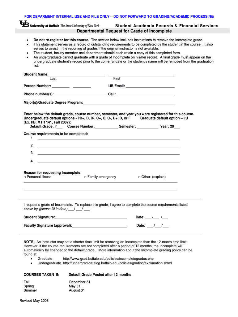 You'll need to provide details such as your name, course number, semester, year, reason for requesting the incomplete grade, and the required signatures from both you and your faculty member.