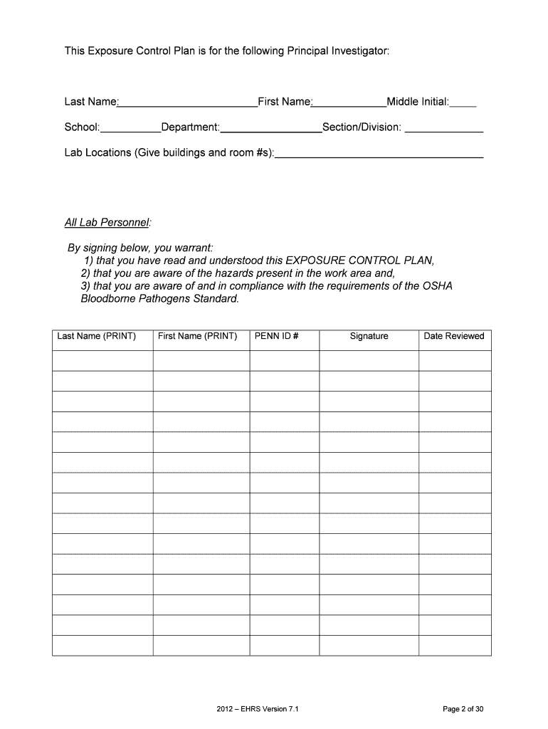 Get the free EXPOSURE CONTROL PLAN - ehrs upenn