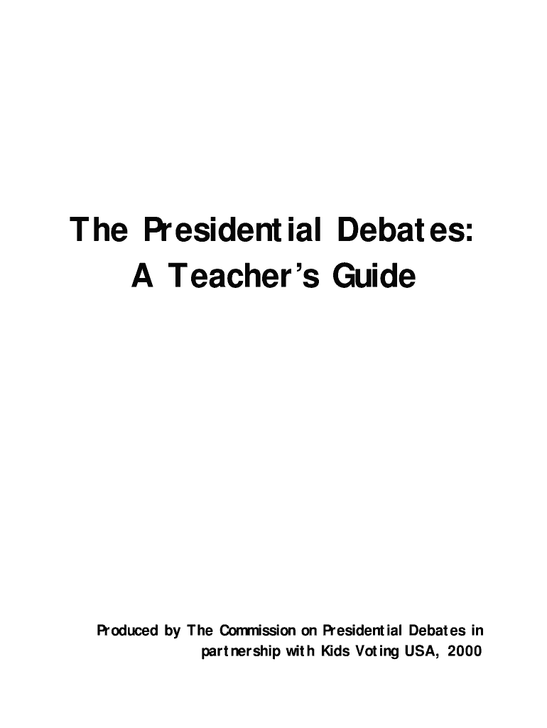 The Teacher's Guide to Presidential Debates is an essential resource crafted by The Commission on Presidential Debates in collaboration with Kids Voting USA. This guide serves as a tool to enhance educational experiences by introducing students to the significant dynamics of presidential debates. By engaged activities, the guide not only fosters an understanding of political discourse but also emphasizes the importance of informed voting in a democratic society.