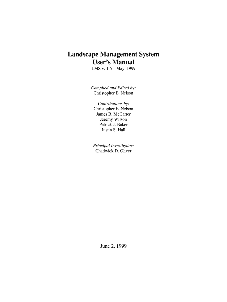 This document is a comprehensive user manual for the Landscape Management System (LMS), detailing its organization, installation, and functionality applied in landscape-level management of forest