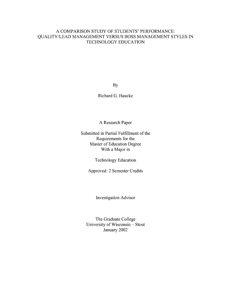 Get the free QUALITY/LEAD MANAGEMENT VERSUS BOSS MANAGEMENT ... - www2 uwstout
