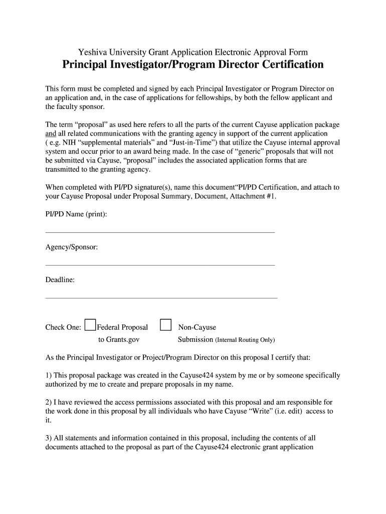This form must be completed and signed by each Principal Investigator or Program Director on an application and is used for reviewing proposals submitted through the Cayuse internal approval system