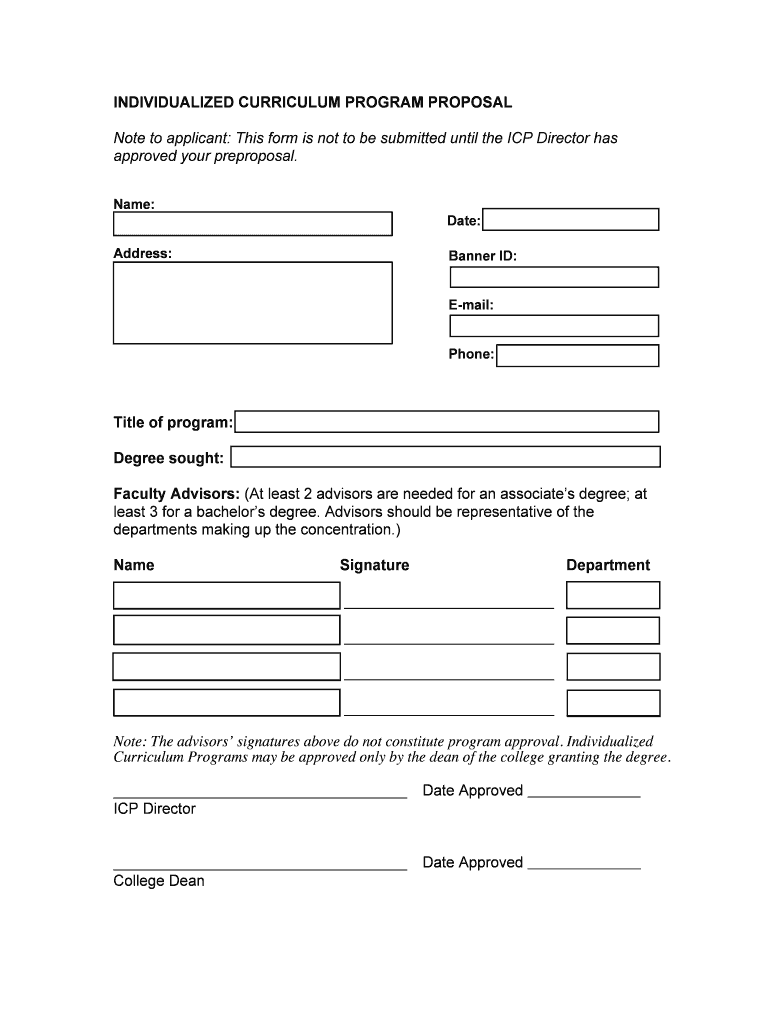 Individualized Curriculum Program Proposal is not the form you're looking for?Search for another form here.