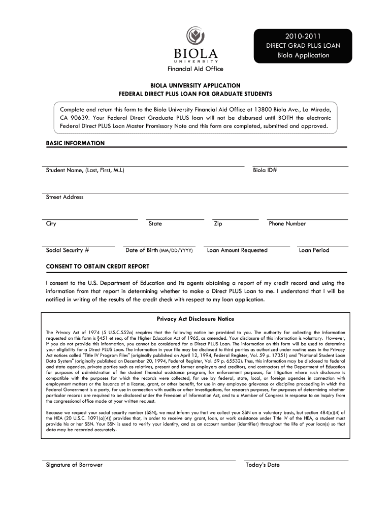 How to fill out 2010-2011 DIRECT GRAD PLUS LOAN?
