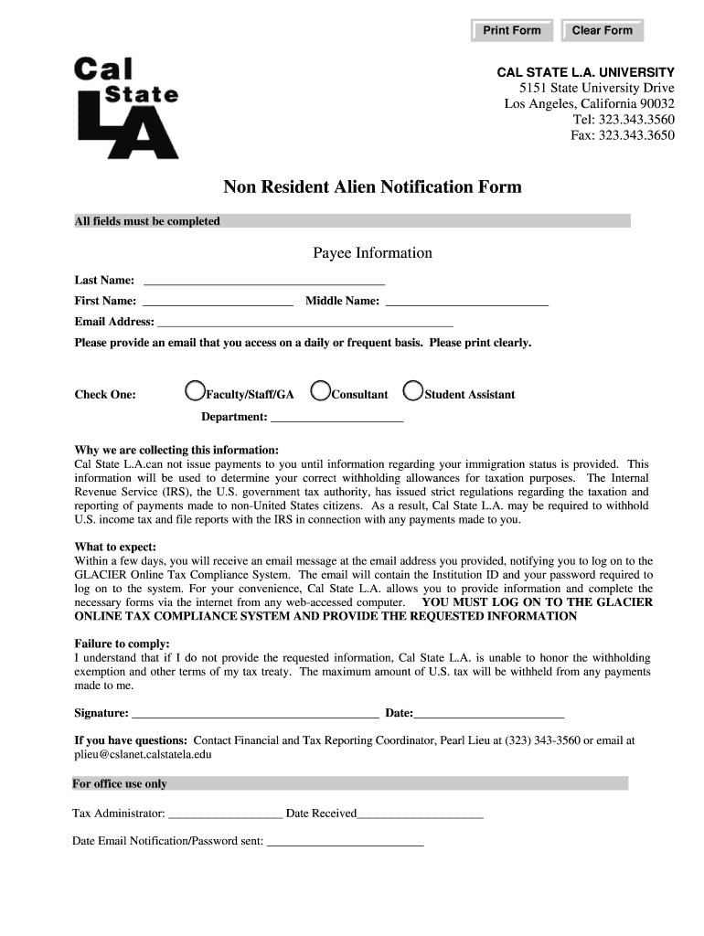 Get the free Non Resident Alien Notification Form - calstatela