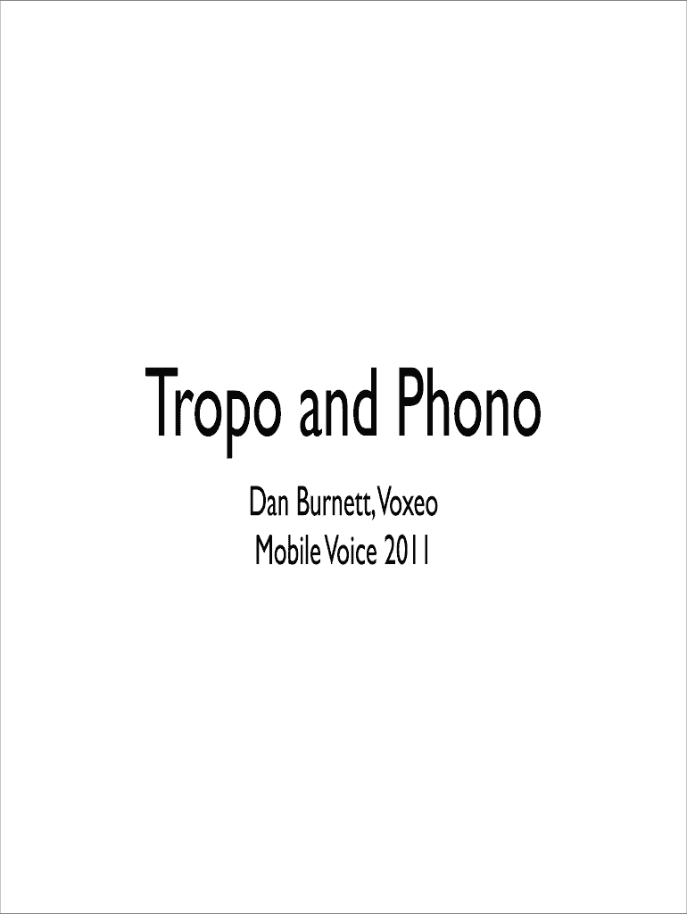 Troop and Photo Dan Burnett, Voxel Mobile Voice 2011 Voxel One of the largest real-time networks in the world. Voice, SMS, I'm, Twitter Totally web scale Troop is for mashups XML JSON HTTP Could use