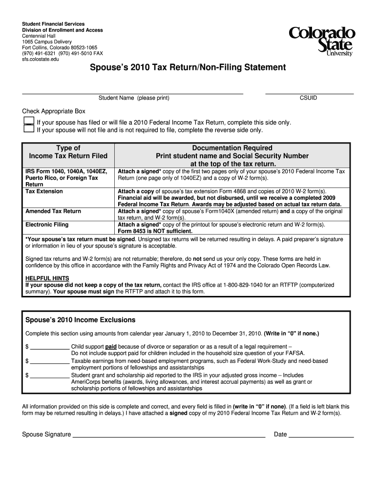 Get the free Spouse's 2010 Tax Return/Non-Filing Statement