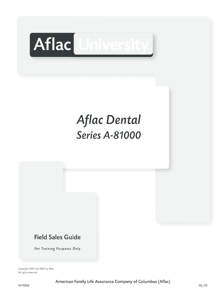 Flag Dental Series A81000 Field Sales Guide For Training Purposes Only Copyright 2004 and 2005 by Flag. All rights reserved. American Family Life Assurance Company of Columbus (Flag) M1106B 06/05