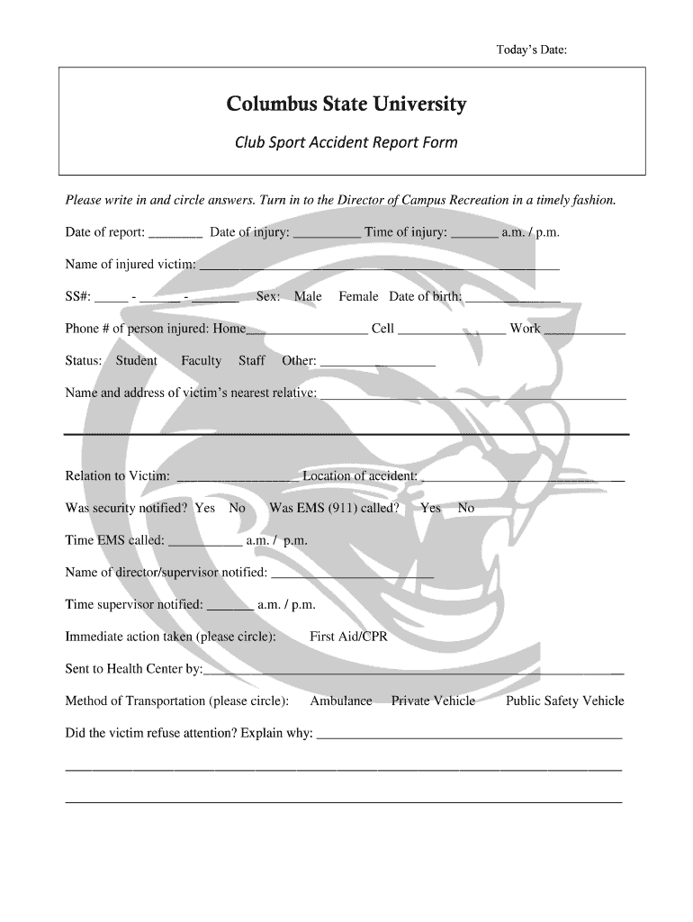 Get the free Club Sport Accident Report Form - campusrec columbusstate