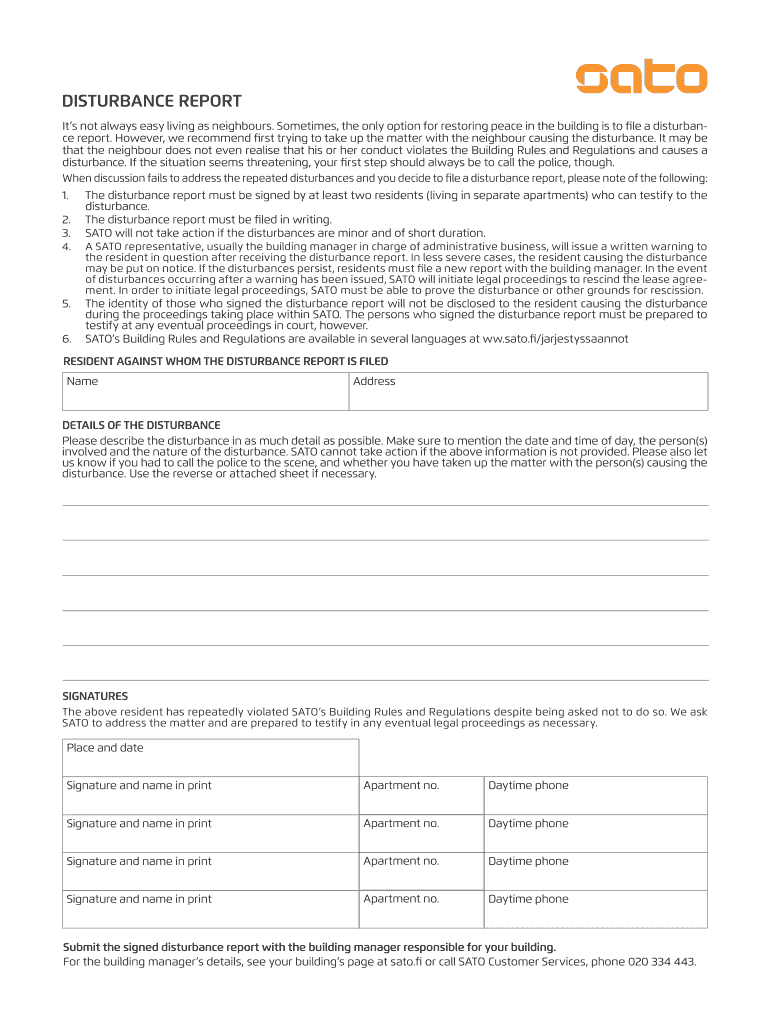 Get the free Disturbance report form with instructions - Sato - sato