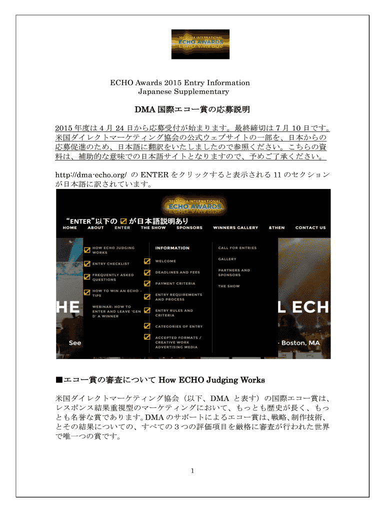 ECHO Awards 2015 Entry Information Japanese Supplementary MA 2015 4 24 7 10 http://dmaecho