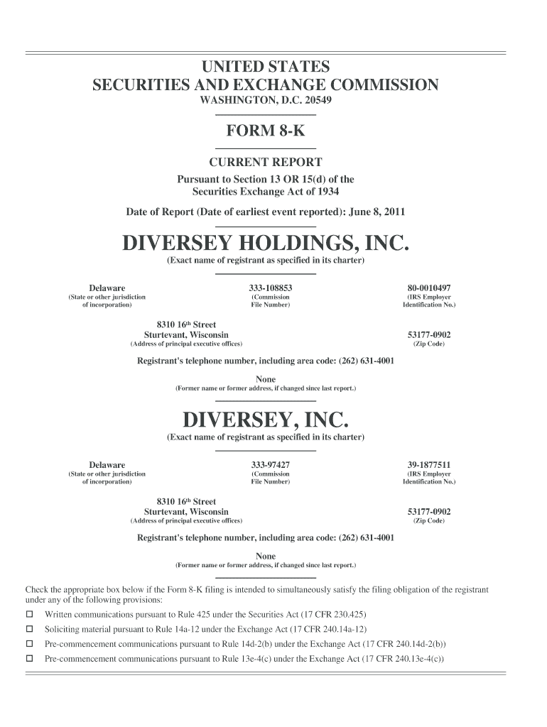 Publicly traded companies listed on U.S. stock exchanges are required to file bformb 8-k - diversey.