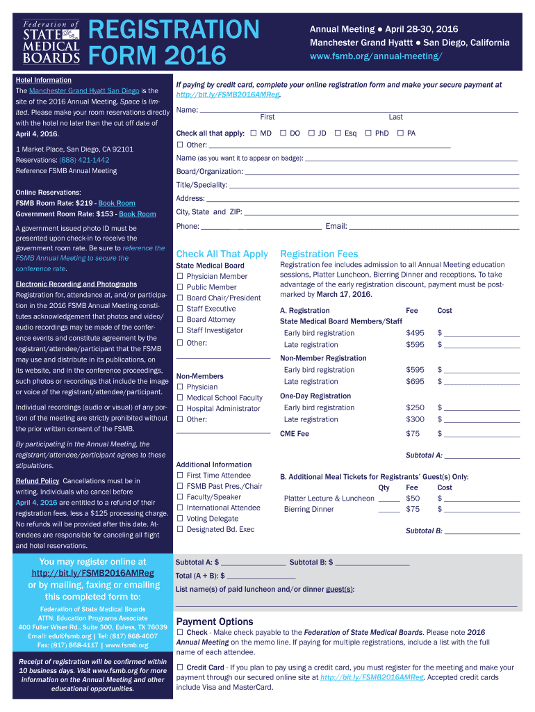 Get the free REGISTRATION Annual Meeting April 28-30 2016 - fsmb